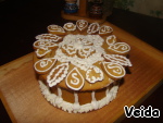 Глазурь: белки взбить в пену и постепенно добавлять сахарную пудру, продолжая взбивать вручную, затем добавляем крахмал и лимонный сок.