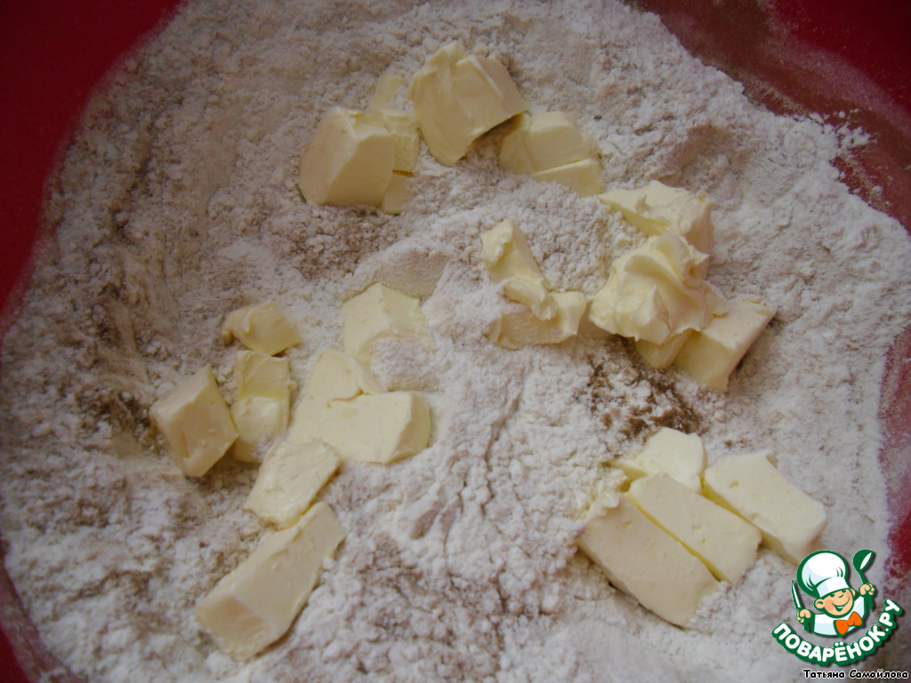 Муку, соду, корицу, мягкое масло, сахар смешиваем.