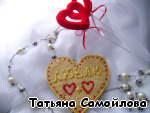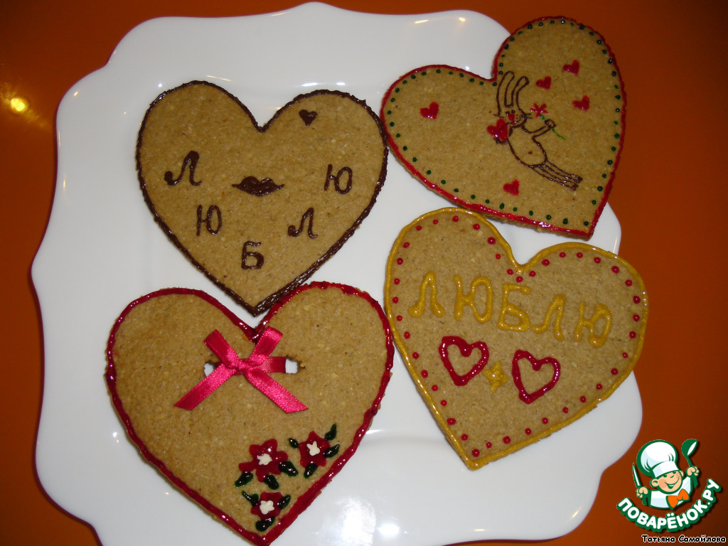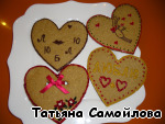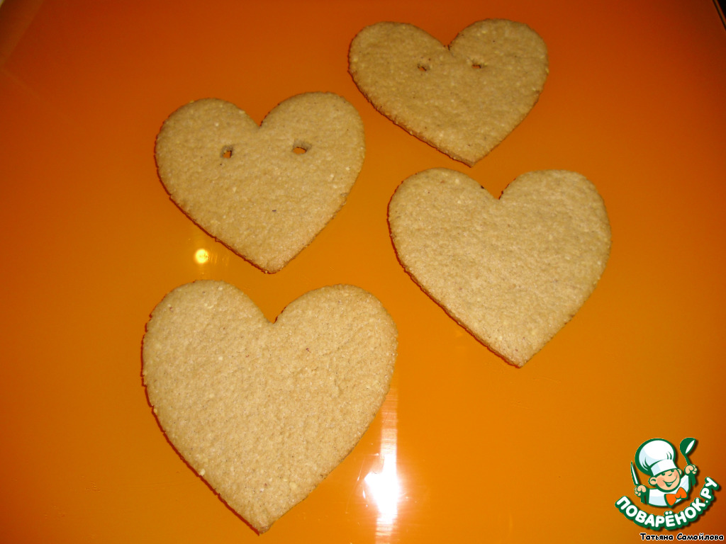 Можно сделать в сердечке 2 отверстия для тесемки. И отправляем в разогретую на 180 градусов духовку на 7 минут.