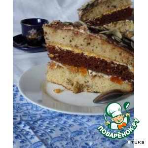Рецепт этого торта был размещен автором "Биа 46 " в 2008 году и иллюстрирован мной в рамках акции "Раскраски". Хочу выразить благодарность автору за прекрасный торт, который всем очень понравился, особенно его оценила моя свекровь! В нем сочетается сладость кураги и изюма с приятной кислинкой цитрусовых. Особенно порадовало тесто - минимум хлопот, а результат превосходный. Всем рекомендую попробовать.