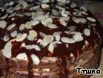 Я еще сделала глазурь: 2 ст.л. сахара, 5 ч.л. какао, 10 ст.л. воды, 1ст.л сливочного масла, варить до загустения. После того как станет теплой - облить торт. Можно украсить лепестками миндаля.