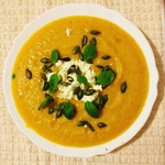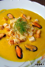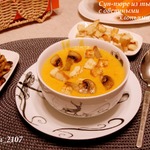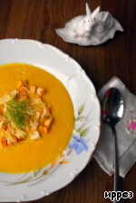 Я понимаю, что мало кого можно удивить тыквенным супом, но этот получился какой-то... особенный, вот честное слово! Овсяные хлопья придают ему приятную бархатистость. Очень-очень вкусный суп!!! Нежный, с кремовой текстурой, сыром и хрустящими сухариками. Буду повторять еще не раз! Дочу заставляю первое есть, а этот суп она в обед поела и еще на ужин попросила. За рецепт благодарна Тане lapundrik с ЖЖ.