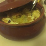 Приготовим соус. Нагреть сливки в маленькой кастрюльке (но не дать кипеть!), ввести в сливки сливочный сыр, хорошо перемешать и чуть прогреть. Добавить муку и немного загустить соус. Сердечки распределить в два порционных глиняных горшочка. Сверху посыпать подготовленной морковкой, выложить поджаренный лук, добавить горошинки перца - я кладу по 4-5 шт. в горшочек. Сверху залить соусом и отправить в духовку на 20 минут.