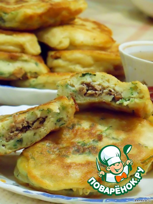 Ингредиенты для «Оладьи с рыбной начинкой»: