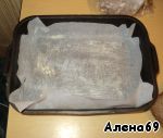 Форму выстилаем пергаментом (бумагой для выпечки). В тефлоновую можно и не класть, но моя старенькая уже.