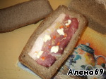 Сделала с куриной грудкой,начинила как и ты морковочкой и чесночком,(специи)положила в серединку сыр,свернула грудку и положила ее в хлебушек(квадратного у нас нет)с маслицем.