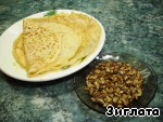 Пока готовятся омлетные блинчики, слегка обжарить и измельчить грецкие орехи.