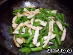 К курице добавить фасоль и готовить на среднем огне, помешивая, ещё 7-9 минут, до готовности фасоли.