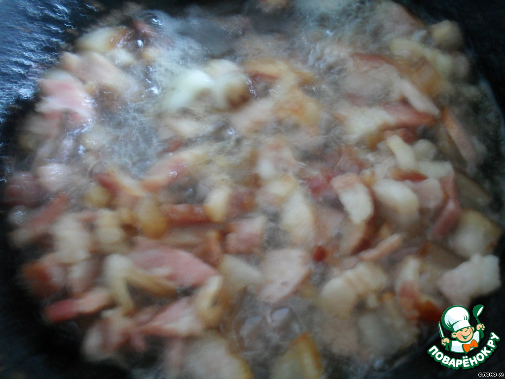 Сало нарезать маленькими кубиками, вытопить на сковороде.