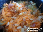 Добавить нарезанные лук и морковь.