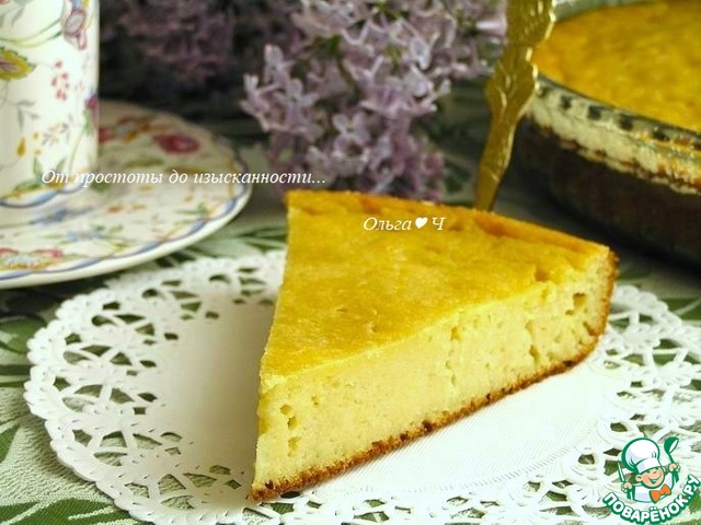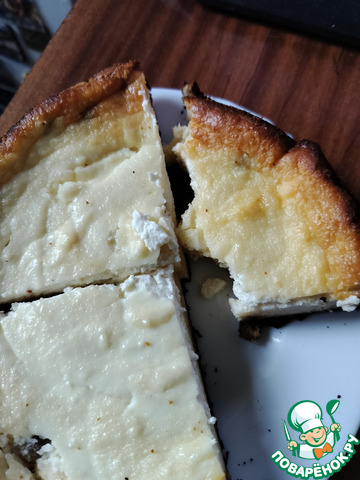 Смазать форму и, на выбор, посыпать дно и бортики панировочными сухарями или той же манкой. Выложить смешанную массу в форму, разровнять и смазать сверху сметаной.