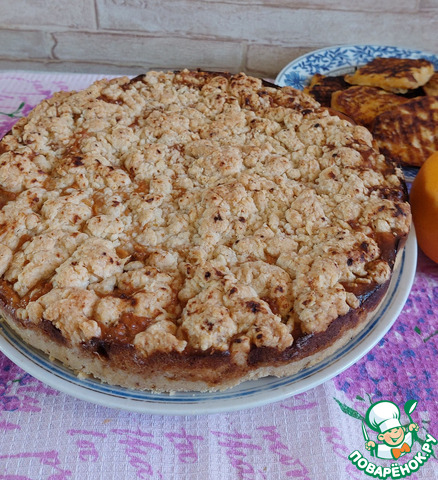 Для теста: смешать мягкое сливочное масло с сахаром, солью, мукой и разрыхлителем, перетереть до консистенции крошек. По рецепту нужно еще добавить 2 ст.л. воды - я не добавляла.