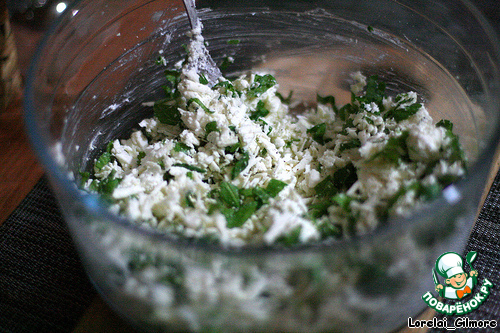 Натерла брынзу, смешала с травами, добавила совсем немного черного перца. Поставила настаиваться.
