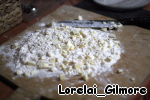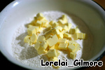 Пока дрожжи "оттопыривались", муку высыпала в миску, масло сливочное нарезала кубиками, дала постоять минут 20, чтобы масло размягчилось.