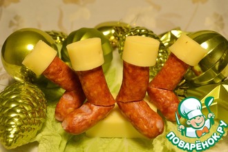 Очень простая в исполнении, но эффектная закуска, для которой сыр не надо варить. Прошу прощения, что нет пошаговых фото, очень уже спешила, поздно было, вот и не сделала, но там все предельно просто.