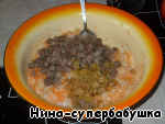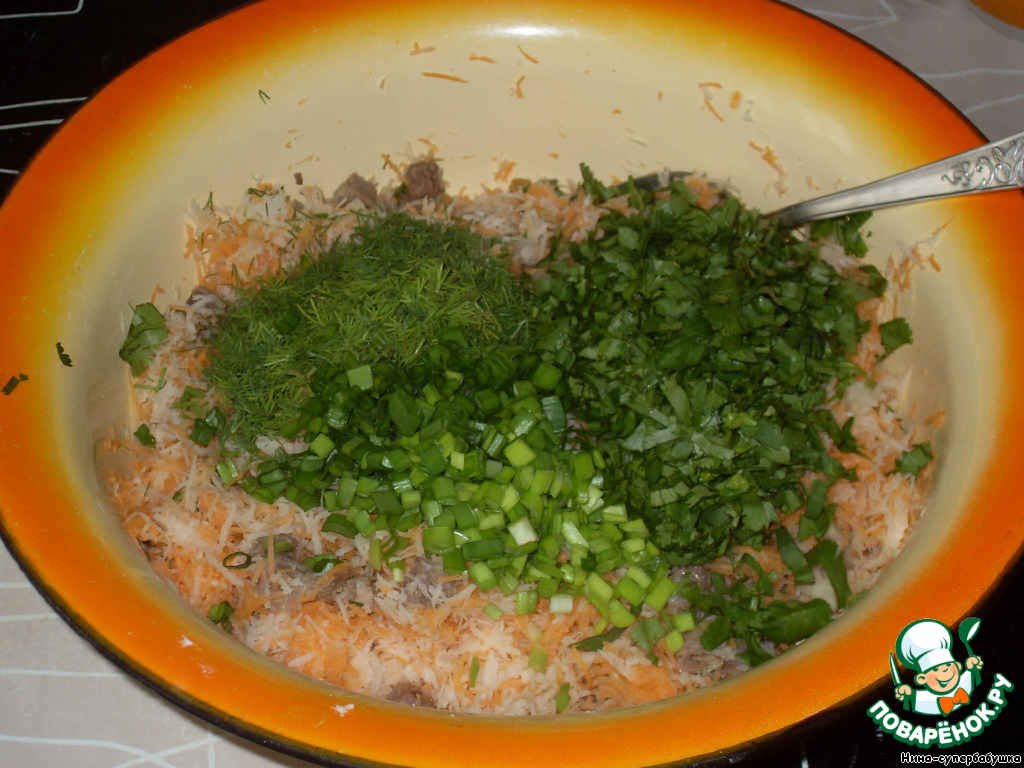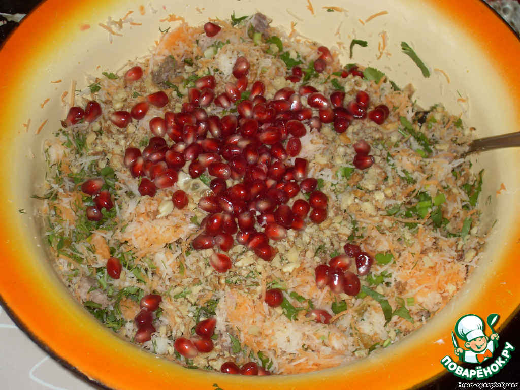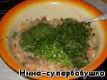 ... мелко нашинкованную зелень и нарубленные орехи. |