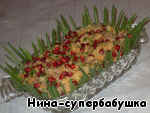 Салат заправить маслом и хорошо перемешать. Выложить в салатник и посыпать оставшимися зернами граната. |