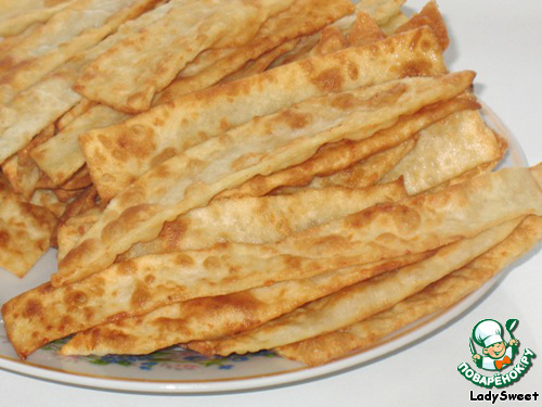 Раскатали тесто (потоньше) в прямоугольник и разрезали на полоски.