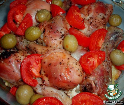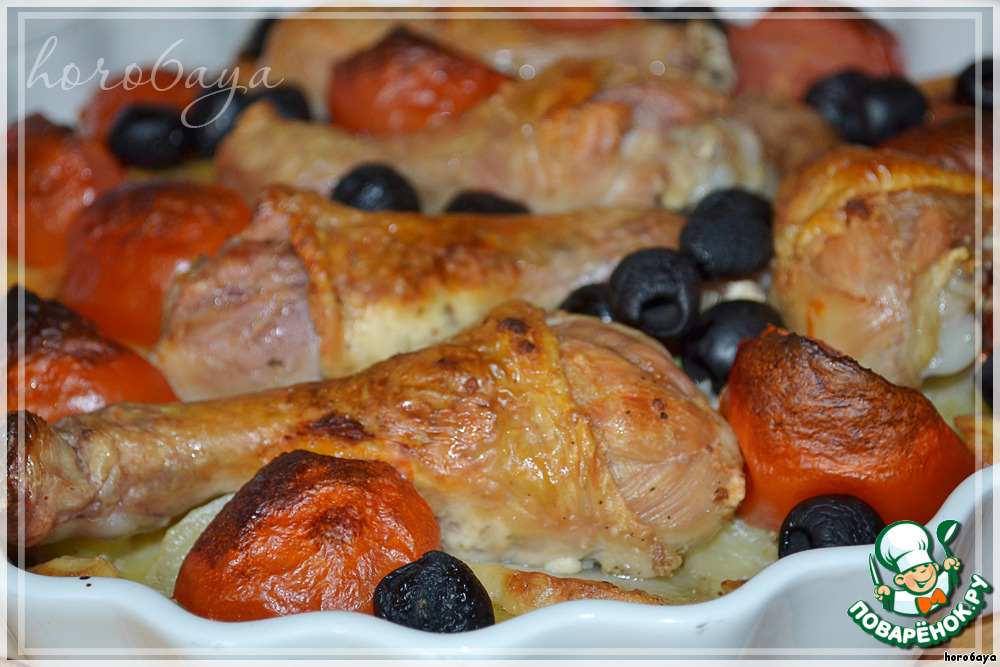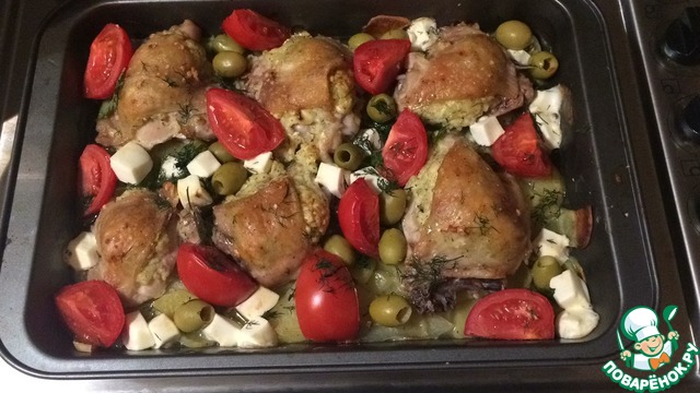 Курица запекается с картофелем и помидорами черри, так что и о гарнире можно не беспокоиться.