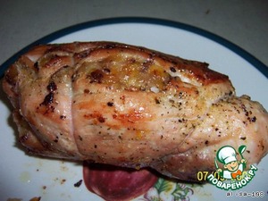 Заверните свинину так, чтобы получился рулет, и перевяжите бечевкой.