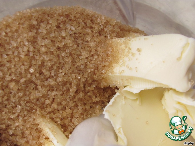 Миксером или в блендере взбейте сливочное масло и коричневый сахар до бледного цвета и кремообразного состояния. -