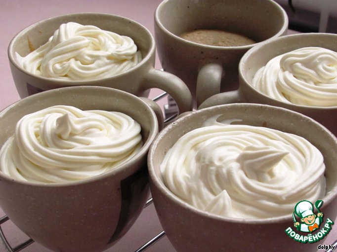 Получившуюся массу переложите в кулинарный кулек и отсадите на каждое пирожное в виде пенки капучино.