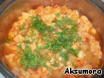 Вместо помидоров я добавляла томатную пасту, тоже вкусно! Заливаем горячей кипяченой водой, накрываем крышкой и ставим на сильный огонь; когда вода закипела, убавляем огонь до среднего и тушим под крышкой до готовности (минут 30-40).