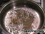 В сковороду наливаем оливковое масло. На нем поджариваем чеснок и сухие травы.