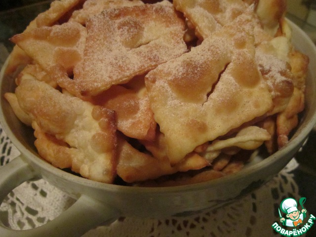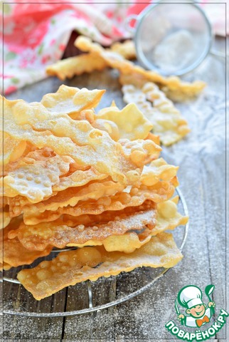 В Италии начинается карнавал!!! В воздухе веет запах различных сладостей, которые готовят в этот период. Одну из них приготовим сегодня!!! Называется... кьякере (что в переводе на русский означает "болтать", "сплетничать"). Может, потому что съедаются моментально, пока пьем чай и болтаем с подружками??!!