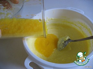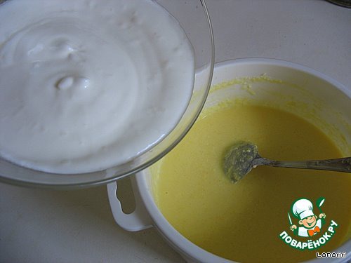 В желтковую массу аккуратно ввести белки