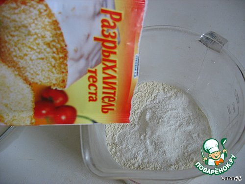 В муку высыпать разрыхлитель и перемешать.