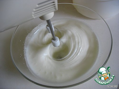 Яйца разделить на белки и желтки. Миксером взбить белки с добавлением половины нормы сахара в течение 5 минут.