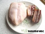 Грудку промываем, заливаем водой (у меня кастрюля 3 л) почти доверху, доводим до кипения и тщательно снимаем пену. Добавляем промытый лук. Грудинку мелко режем, кладем в кастрюлю (грудинки можно взять и побольше, я не хотела делать жирный суп, а для запаха копчености этого хватило). Варим до готовности грудки при слабом кипении. Грудку вынимаем, луковицу вынимаем и выбрасываем. Часть грудки или всю мелко режем и возвращаем в кастрюлю. Добавляем горох и приправы. Варим минут 15-20.