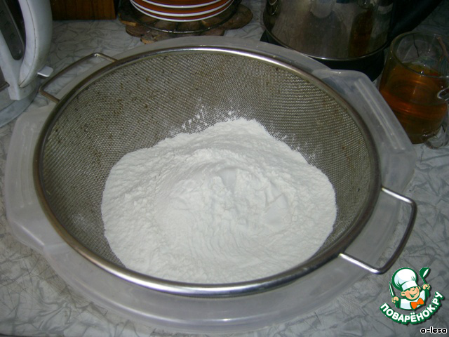 - Мука пшеничная / Мука (2,5 стак. + 0,5 стак. на досыпку) — 600 г