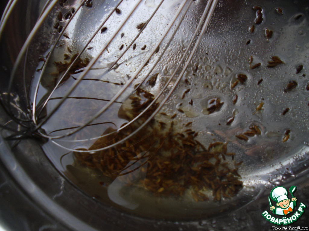 Семена зиры жарим на сухой сковороде 2 минуты. Затем взбиваем с оливковым маслом, солью и перцем.