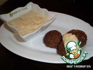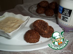 Подавайте с соусом. Банан + 2 ч. л лимонного сока + 1ч. л йогурта без добавок; все хорошо перемешать до однородной массы (я использовала венчик, можно блендером).