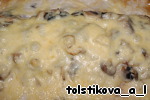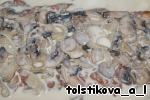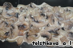В форму для запекания уложить 1/2 часть шампиньонов.