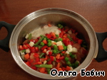 Добавить к мясу овощи (предварительно разморозить, отжать) и желатин.