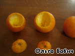 Срезать верхнюю часть у апельсина и аккуратно ложкой выбрать содержимое.