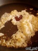 Обжарить лук на небольшом количестве жира, оставшегося после жарки утки, 3-4 минуты.