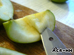 Яблоки моем, режем на 4 части, чистим от косточек. Затем ножом вырезаем мякоть, подрезая аккуратно по всему периметру ножом, затем отделяя по частям.