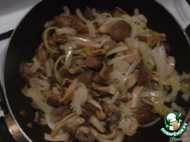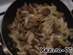 • Обжариваем грибы и лук. Соль и специи кладем по вкусу.