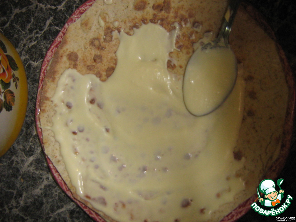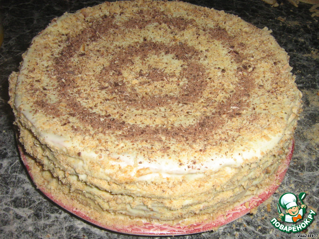 Очень сладкий, вкусный и быстрого приготовления. Подойдет даже начинающим кулинарам, т. к. коржи жарятся на сковороде.