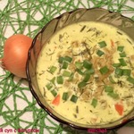 Замечательный, очень интересный суп. С йогуртом и мятой - это мне нравится! Ели его с огромным удовольствием. Рецепт из какого-то кулинарного журнала.