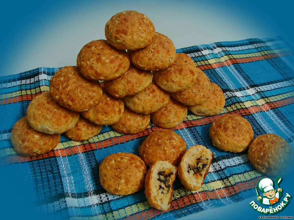 Рецепт «Лепешки с сыром и овсяными хлопьями»:
