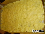 Тесто раскатать на противне на бумаге для выпечки.