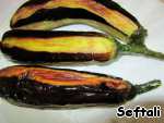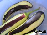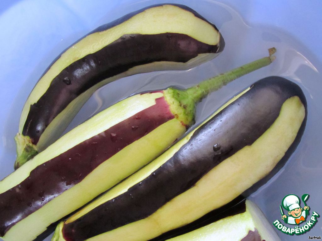 Баклажан чистим в форме зебры - одну полоску срезаем, одну оставляем. получается 4:4