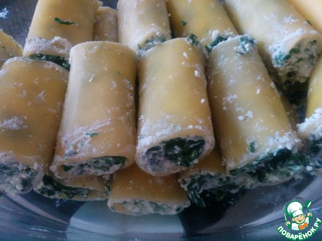 Рецепт «Каннеллоне со шпинатом и творожным сыром»: