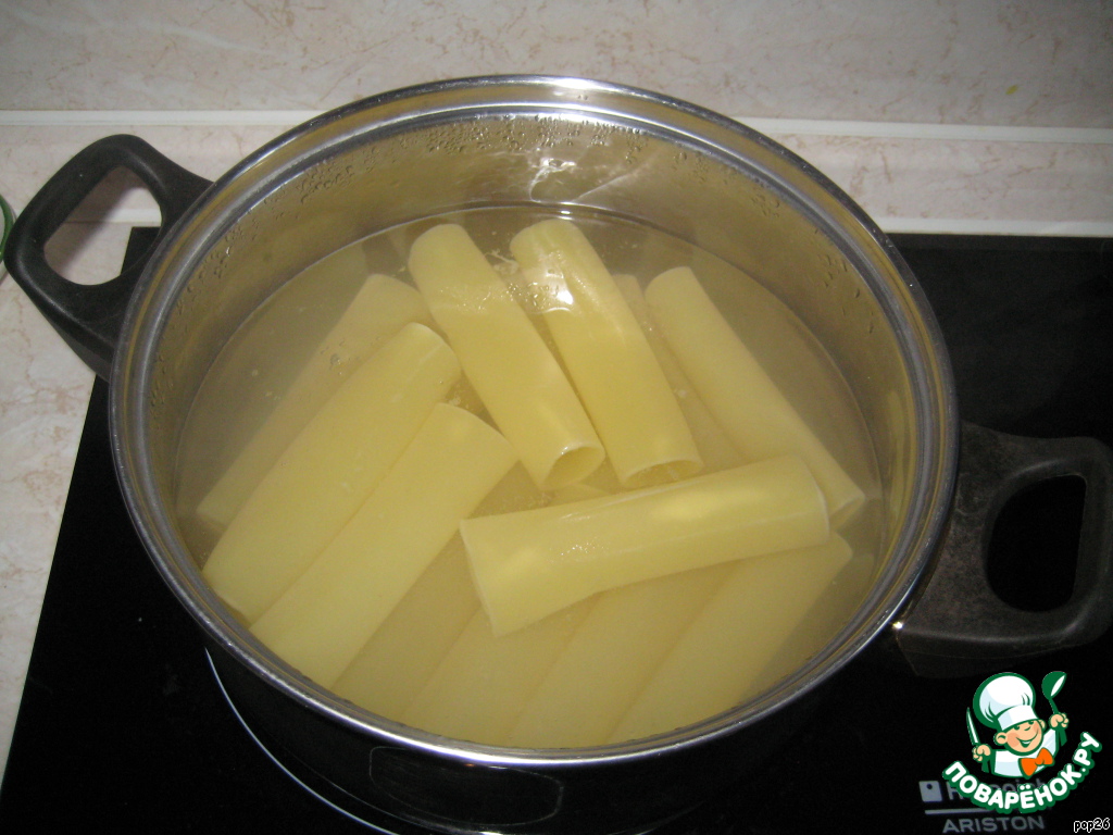 Каннеллони отварить 4 мин. (так было указанно на пачке).