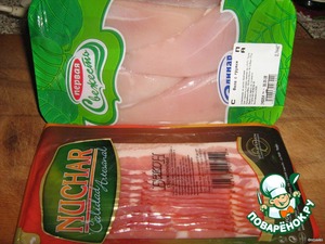 Ингредиенты для «Рулетики из куриной грудки в беконе»: